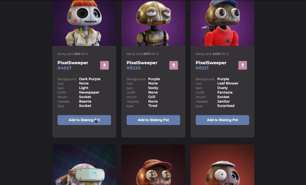 At 15:00 UTC, Monday 2 May, we will open up staking for your PixelSweepers. This article will introduce how to stake your Sweepers, why you would want to stake your Sweepers and what’s coming in the future for those people who stake.